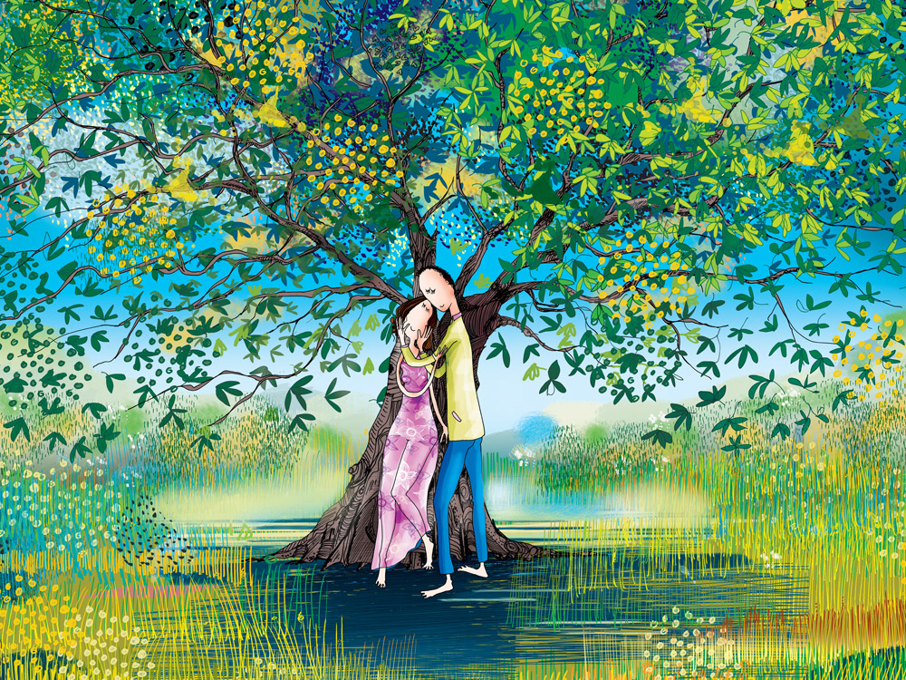 Tego dnia wybrali się na pierwszą po zimie wycieczkę z dala od miasta. Wszędzie było już widać ślady wiosny. Mijali po drodze krzewy kwitnących forsycji i czeremchy i całe białe od kwiatów drzewa czereśni. W pewnej chwili ich uwagę zwróciło stojące na uboczu drzewo, uginające się pod ciężarem ogromnych różowych kwiatów - wyglądało magicznie.